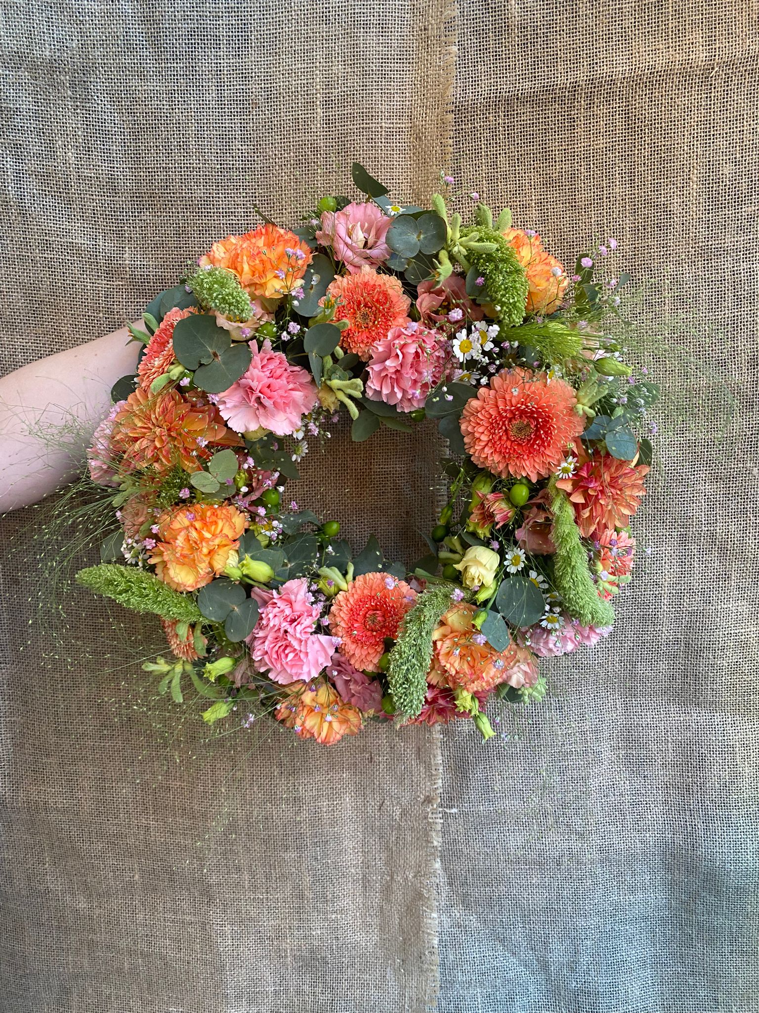 Rouwstuk Krans Roze/Oranje 40cm